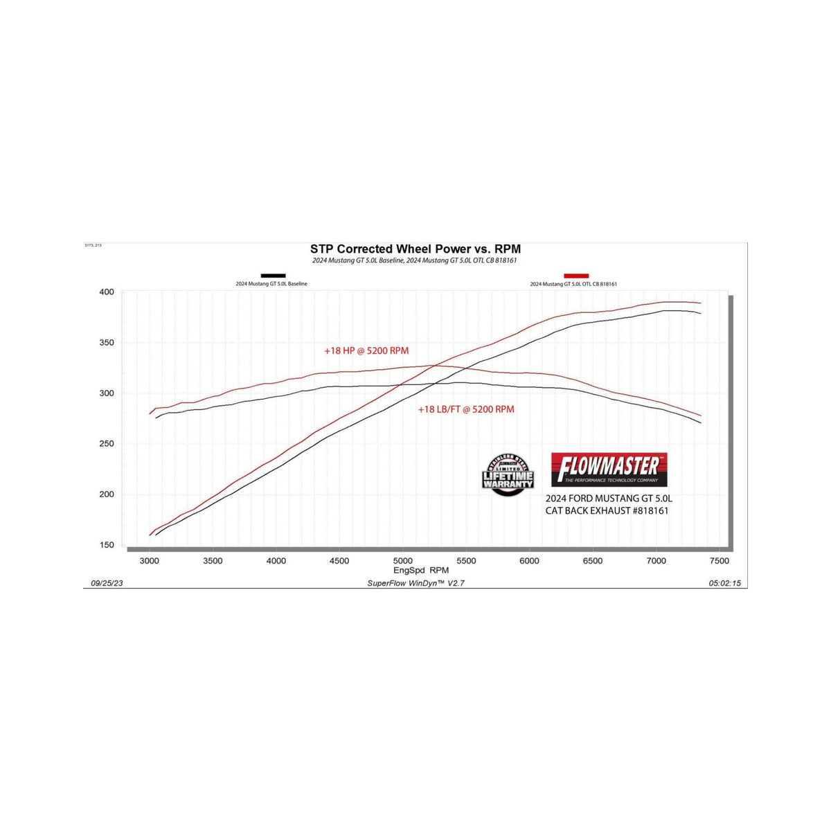 - Max increases of up to 18 hp and 18 lb-ft over the stock exhaust at the rear wheels