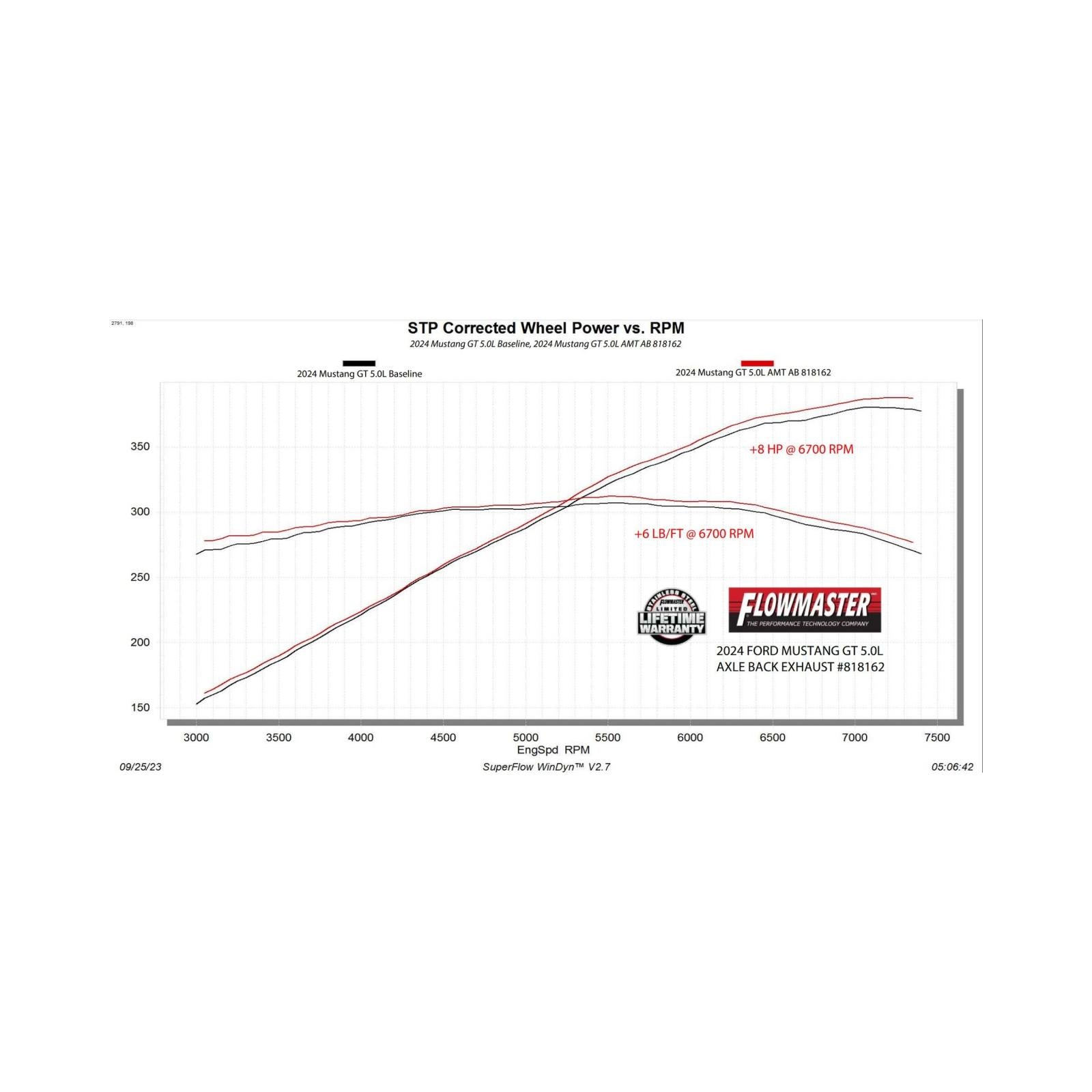 - Max increases of up to 8 hp and 6 lb-ft over the stock exhaust at the rear wheels