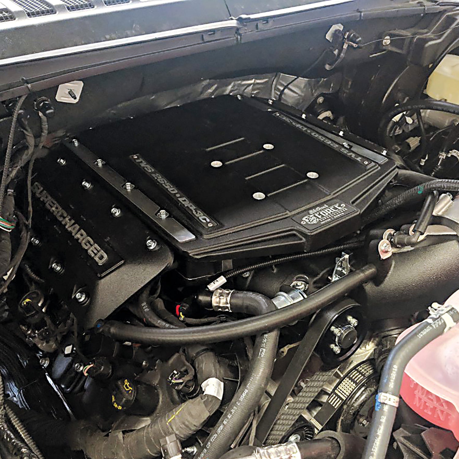 The Edelbrock Supercharger System part #158120 is designed for use on a 2019-2021 Ford F150 with Gen III DI/PI 5.0L Coyote engine and 10-Speed automatic transmission. The heart of this system is the high-efficiency Eaton Gen VI 2650 TVS rotating assembly with a four-lobe design with 170 degrees of twist for maximum flow, minimum temperature rise and quiet operation for excellent drivability. The system also features an integrated bypass valve to help eliminate parasitic loss under light throttle, improving fuel mileage potential. The front drive, front inlet configuration results in a shorter, less restrictive intake path for improved airflow without the need for a power-robbing jackshaft. Keeping the air cool is a high-capacity, Dual-Pass 3-Core (DP3C) air-to-water intercooler and duel pass front-mount heat exchanger. The Edelbrock #158120 system is 50-state emissions legal and provides the best combination of performance and reliability for your F150 whether you plan to tow a trailer, haul heavy loads, or you just want to feel your F-150 come to life! HANDHELD PROGRAMMER NOT INCLUDED. Supercharger systems sold without tuners are only emissions legal when used with the correct Edelbrock program. Which can be requested by contacting the Edelbrock calibration team at calibration@edelbrock.com. Tunes for 91 and 93 octane fuels are available upon request. This system will produce approximately 601whp 468wtq using 93 octane. Vehicle Specific