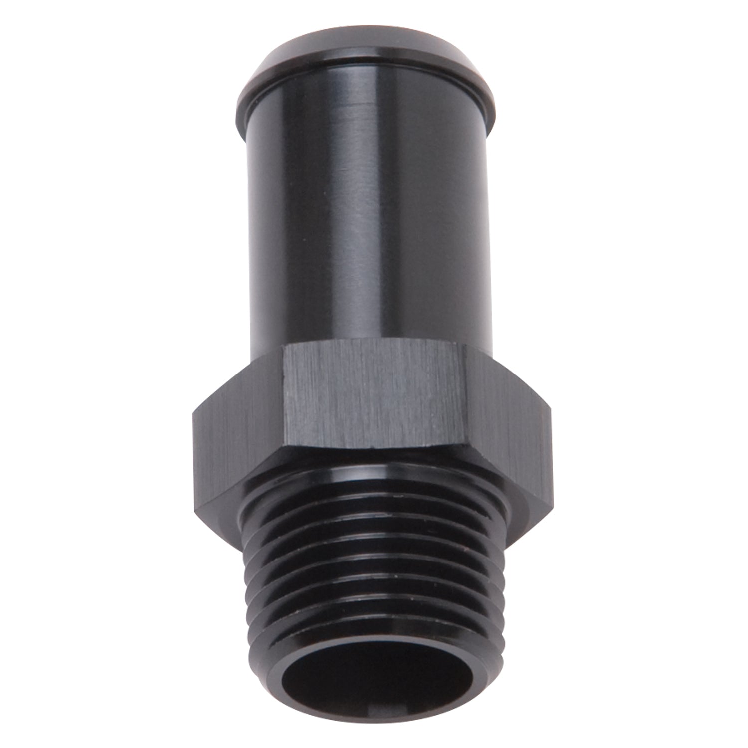 Edelbrock part #8187 heater hose end is designed to hold up to any plumbing task you have. This heater hose end is made from high quality aluminum to ensure they won't rust or corrode. Features Straight end with 3/8" NPT and 5/8" Barb, black anodized finish.