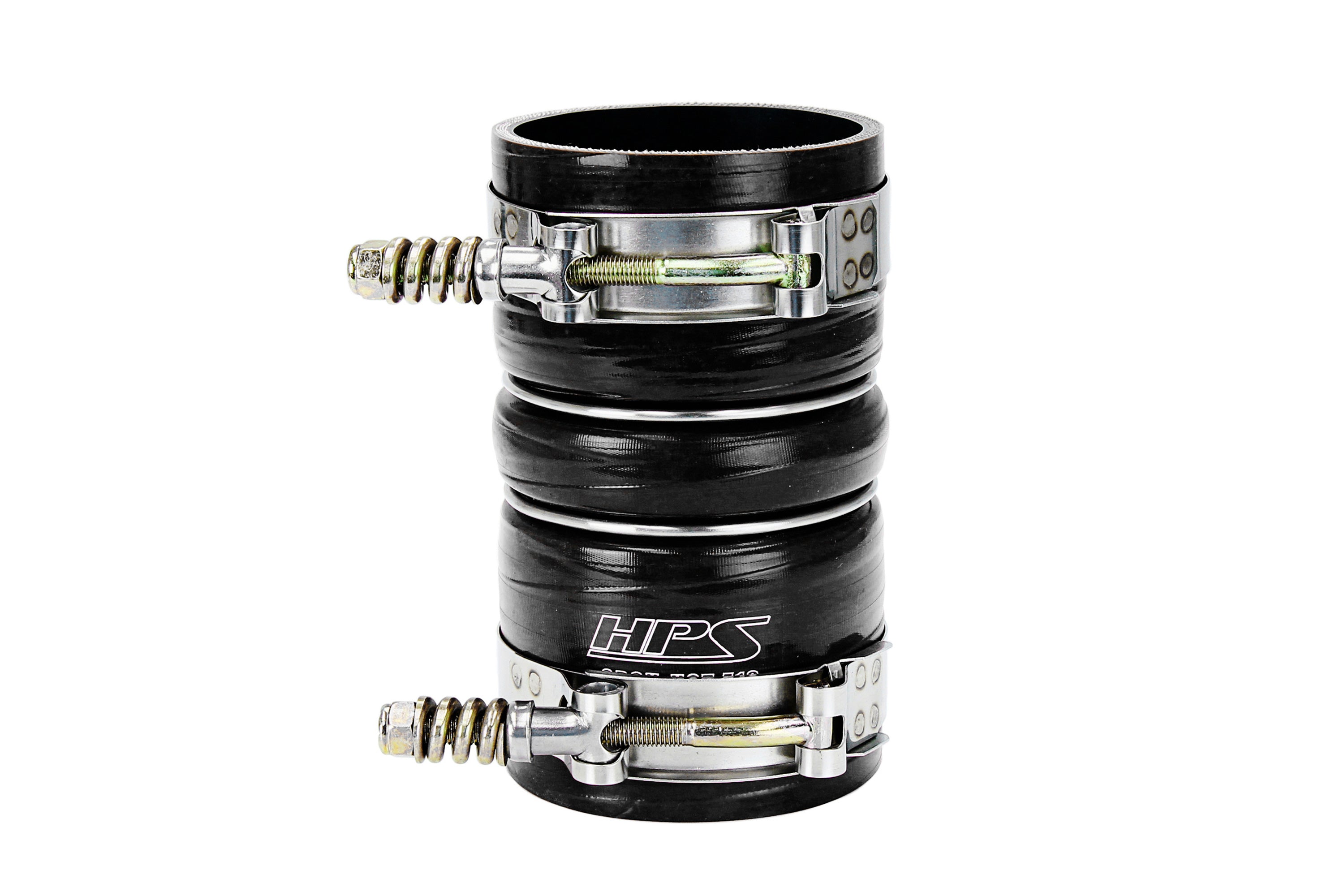 This HPS High Temp 4-ply Reinforced Silicone Turbocharger Intercooler Boot is an upgraded replacement for an OEM turbocharger intercooler boot, which is known to weaken and fail over time. Crafted with oil-resistant fluorolined silicone and engineered for superior performance, it is capable of enduring high levels of boost pressure and extremely high temperatures (up to 500F) under the hood, ensuring reliability across various operating conditions. With 4 layers of aramid reinforced silicone and a pressure tolerance of over 100 PSI, boost leaks are a thing of the past. Designed using the OEM component, this HPS product guarantees a seamless fit. Included in this kit are stainless steel spring loaded T-bolt clamps for an easy and leak-free installation. Upgrade your truck or equipment with this boot kit and avoid costly expenses in the long run.
