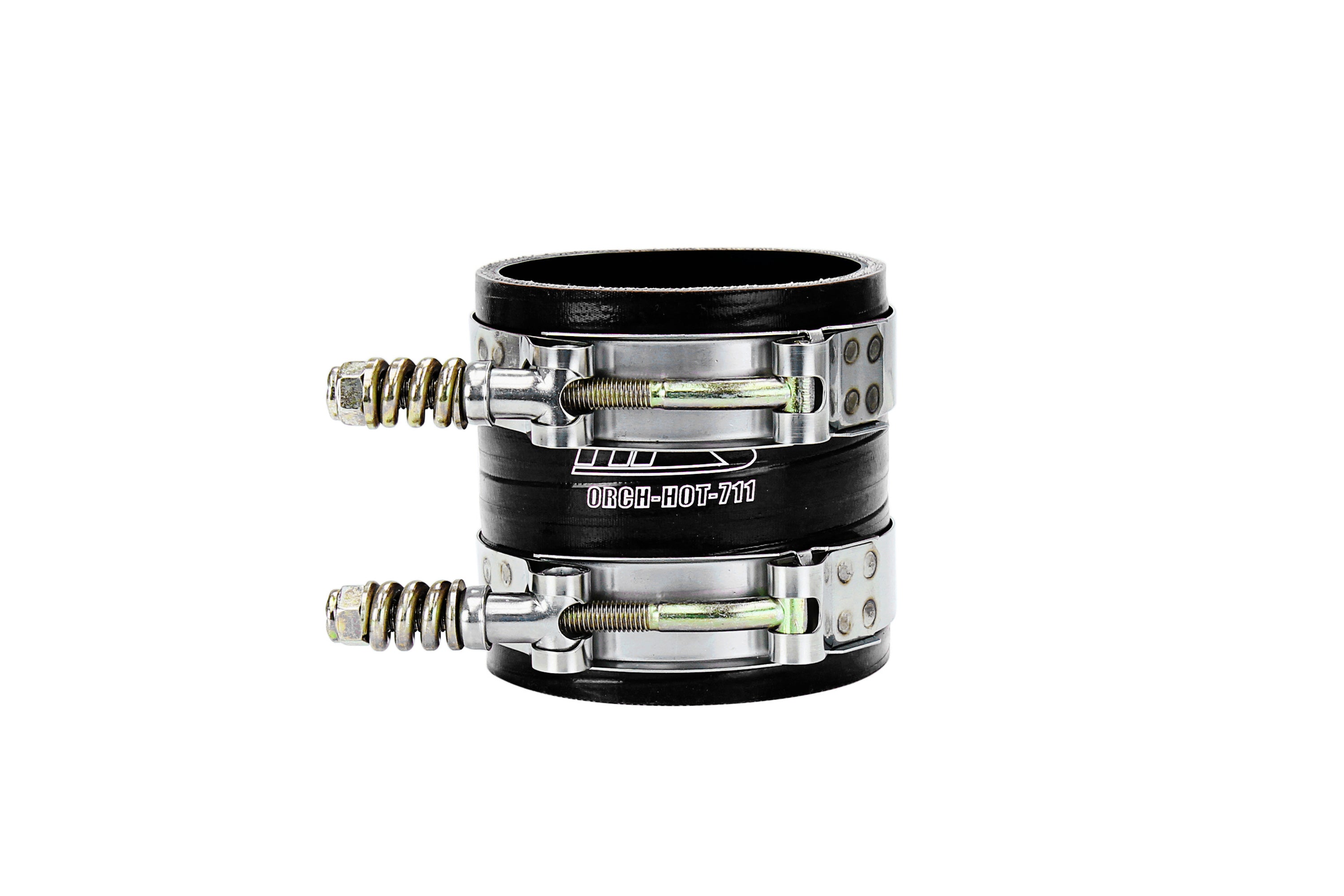 This HPS High Temp 4-ply Reinforced Silicone Turbocharger Intercooler Boot is an upgraded replacement for an OEM turbocharger intercooler boot, which is known to weaken and fail over time. Crafted with oil-resistant fluorolined silicone and engineered for superior performance, it is capable of enduring high levels of boost pressure and extremely high temperatures (up to 500F) under the hood, ensuring reliability across various operating conditions. With 4 layers of aramid reinforced silicone and a pressure tolerance of over 100 PSI, boost leaks are a thing of the past. Designed using the OEM component, this HPS product guarantees a seamless fit. Included in this kit are stainless steel spring loaded T-bolt clamps for an easy and leak-free installation. Upgrade your truck or equipment with this boot kit and avoid costly expenses in the long run.
