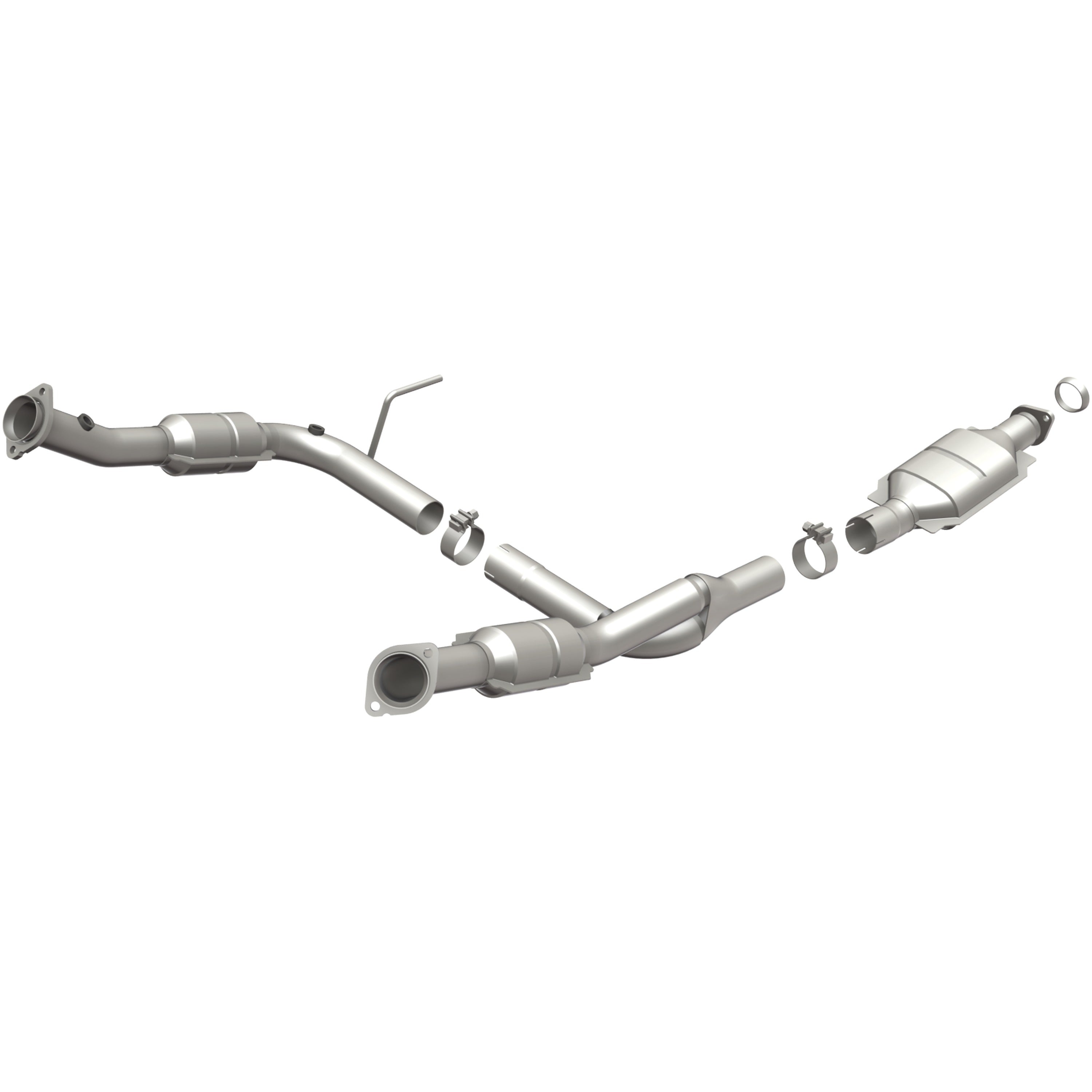 Keep the check engine light off with MagnaFlow HM Grade Federal/EPA Compliant Direct-Fit Catalytic Converter 93108. With features including free-flowing mandrel-bent tubing and highly corrosion resistant stainless steel construction, easily install this converter yourself using the proper tools, no cutting or welding required. MagnaFlow's state-of-the-art metrology department uses the latest 3D scanning systems during research and development, so you can be confident that your new part will fit and function like the original equipment. By replicating the OE design, the single laser fusion weld greatly reduces the possibility of a leak, and our compact, low-mass design also allows for greater thermal efficiency. MagnaFlow 93108 includes (1) Donut Gasket, (2) Torca Clamps and interchanges with OE parts 2C5Z-5F250-AA. This replacement part is designed to meet or exceed Federal emissions requirements set forth by the EPA, complying with legal standards for OBDII Federally registered vehicles with Federal/EPA Emission systems.